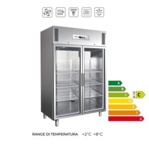 G-GN1410TNG- ARMADIO INOX a refrigerazione ventilata con porte in vetro (Temp. +2°C+8°C )