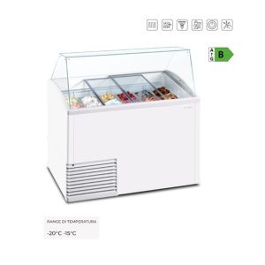 Conservatore per gelato mantecato con temperatura di esercizio -25° C -5° C. Prodotto dal design elegante , realizzato con Mobile in colore nero (RAL 9005) e grigio con dettagli glitter, zoccolo in colore grigio (RAL 9006). Massima capienza del vano di riserva : 4x 7,5 lt. (mod. 4) 6x 7,5 lt. (mod. 6) 8x 7,5 lt. (mod. 8) 10x 7,5 lt. (mod. 10). Termostato elettronico e sbrinamento manuale. Evaporatore statico avvolto sulla vasca, con agitatore interno vasca per i modelli 6,8 e 10. Dotato di eleganti luci a led incluse all’interno e ruote pivotanti (Nr. 4) ** (Le Carapine non sono in dotazione ). Disponibile in 4 diversi modelli con differenti capacità e dimensioni : 4 (Carapine) 130 Lt. – 6 (Carapine) 220 Lt. – 8 (Carapine) 245 Lt. – 10 (Carapine) 355 Lt.