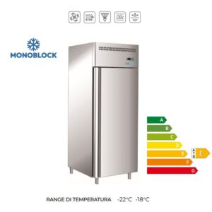 Armadio congelatore in classe climatica 4, di grande affidabilitร testata nel tempo. Mobile in lamiera dโacciaio preverniciata bianca trattata anti corrosione con struttura robusta anti deterioramento, vasca in lamiera dโacciaio bianca trattata anti corrosione. Evaporatore statico (con agitatore escludibile), termostato elettronico e sbrinamento manuale. Dotato diย serratura, 2 piedini regolabili e con 5 ripiani removibili. Colore BIANCO. Ideale per prodotti da pasticceria, gelateria e alimenti surgelati, fino a 290 kg di gelato stoccabile (Assetto interno per gelateria:ย Max. 58 vaschette da 5 l. 360×165 H120 mm con 9 griglieย – – Max. 30 carapine inox da 7,5 l. 0200 H250 mm )