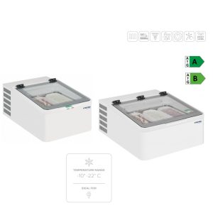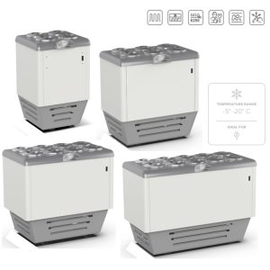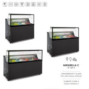 Conservatore per gelato mantecato da incasso con temperatura di esercizio -25° C -5° C. Prodotto con miglior rapporto qualità/prezzo sul mercato, realizzato con mobile, zoccolo e piano di lavoro in acciaio AISI 304; massima capienza del vano di riserva : 4x 7,5 lt. (mod. 4) 6x 7,5 lt. (mod. 6) 8x 7,5 lt. (mod. 8) 10x 7,5 lt. (mod. 10). Termostato elettronico e sbrinamento manuale. Evaporatore statico avvolto sulla vasca, con agitatore interno vasca per i modelli 6,8 e 10. In dotazione Lavaporzionatore e ruote pivotanti (Nr. 4) ** (Le Carapine non sono fornite in dotazione ) – Disponibile in 4 diversi modelli con differenti capacità e dimensioni : 4 (Carapine) 130 Lt. – 6 (Carapine) 220 Lt. – 8 (Carapine) 245 Lt. – 10 (Carapine) 355 Lt.