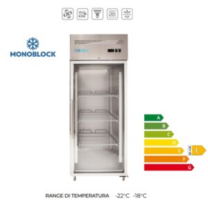 Armadio refrigerato/congelatore in classe climatica 4 testato a 38°C – Mobile in lamiera d’acciaio inox AISI 304, realizzato con un isolamento di 8 cm; vasca in lamiera d’acciaio inox e guide interne stampate in acciaio AISI 304. Evaporatore ventilato a pacco alettato, termostato elettronico e sbrinamento automatico. Dotato di luce interna orizzontale a LED, serratura e porta reversibile; presenta dimensioni interne di : 53,4 x 68,5 x 148,5 Cm con una capacità di 1255 Lt. netti ( 1.400 Lt. lordi) . Disponibile nelle versioni : PX con temperatura positiva/ negativa ( -2° C + 8° C ) ed NX con temperatura negativa ( -22°C -18°C)