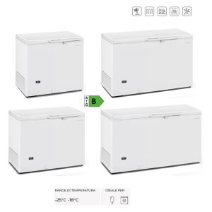 Congelatore orizzontale a pozzetto con coperchi vetrati scorrevoli curvi. Versione tropicalizzata, ideale per prodotti da pasticceria, gelateria e alimenti surgelati. . Evaporatore statico avvolto sulla vasca 4 ruote pivotanti – Serratura – Possibilità di personalizzazione sui 4 lati. Disponibile in 4 modelli con differenti capacità e dimensioni :